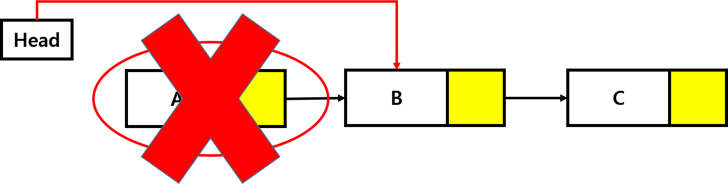 head = removed->link; // 헤드 포인터는 첫 번째 노드가 가리키는 노드(두 번째 노드)를 가리킴
