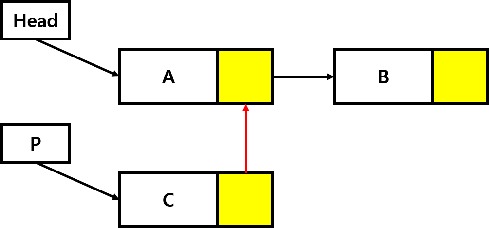 head = p; // 헤드포인터는 이제 p를 가리킴
